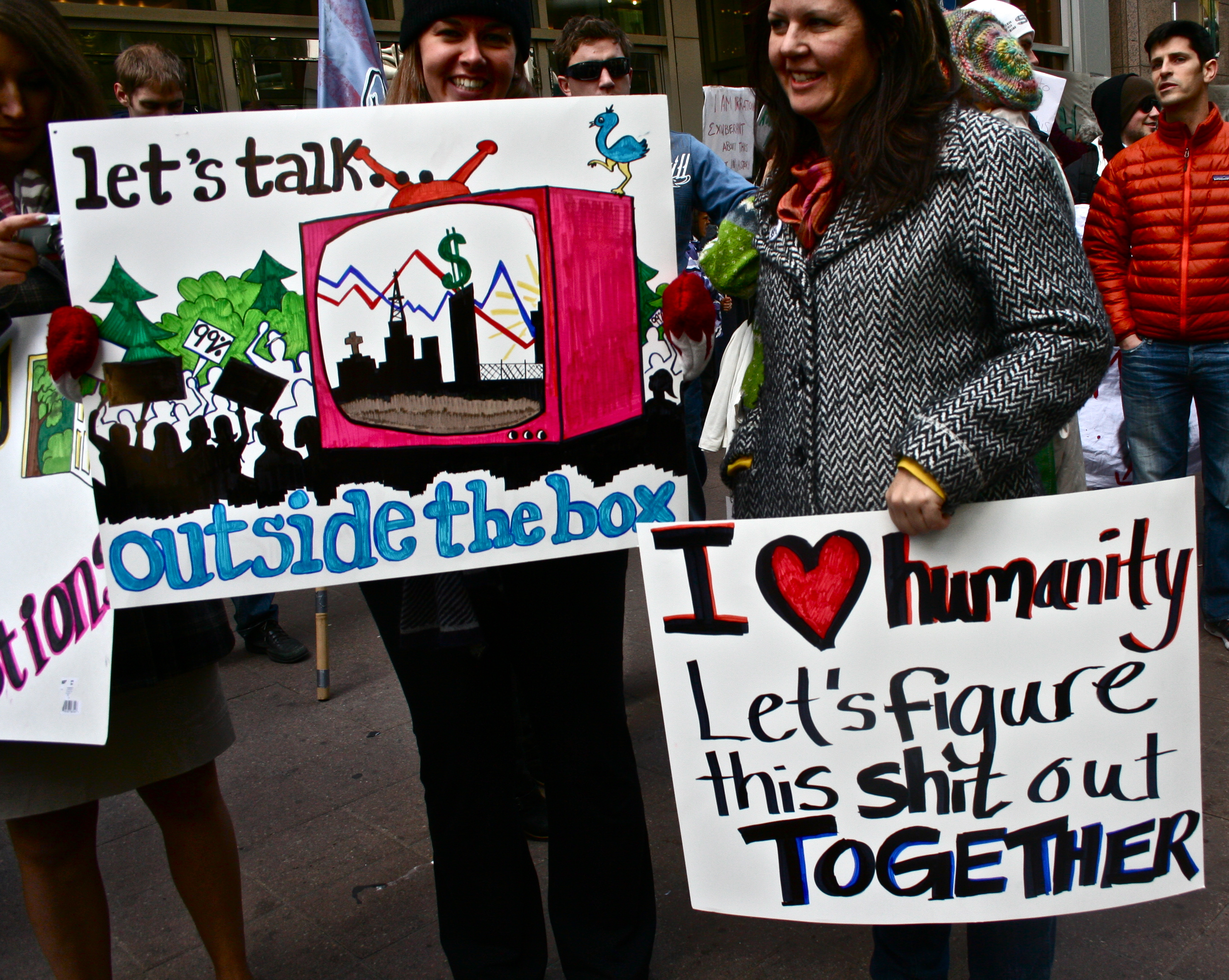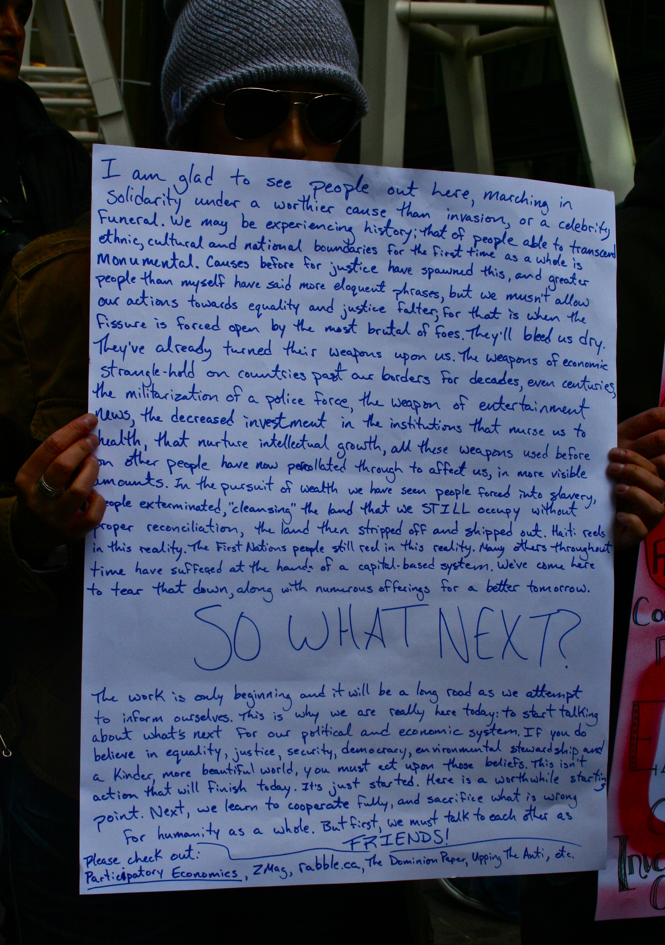 Although the #OccupyCalgary demonstrators voiced their solidarity with the American people, the Calgary ‘occupiers’ were generally more concerned about the issues here at home.