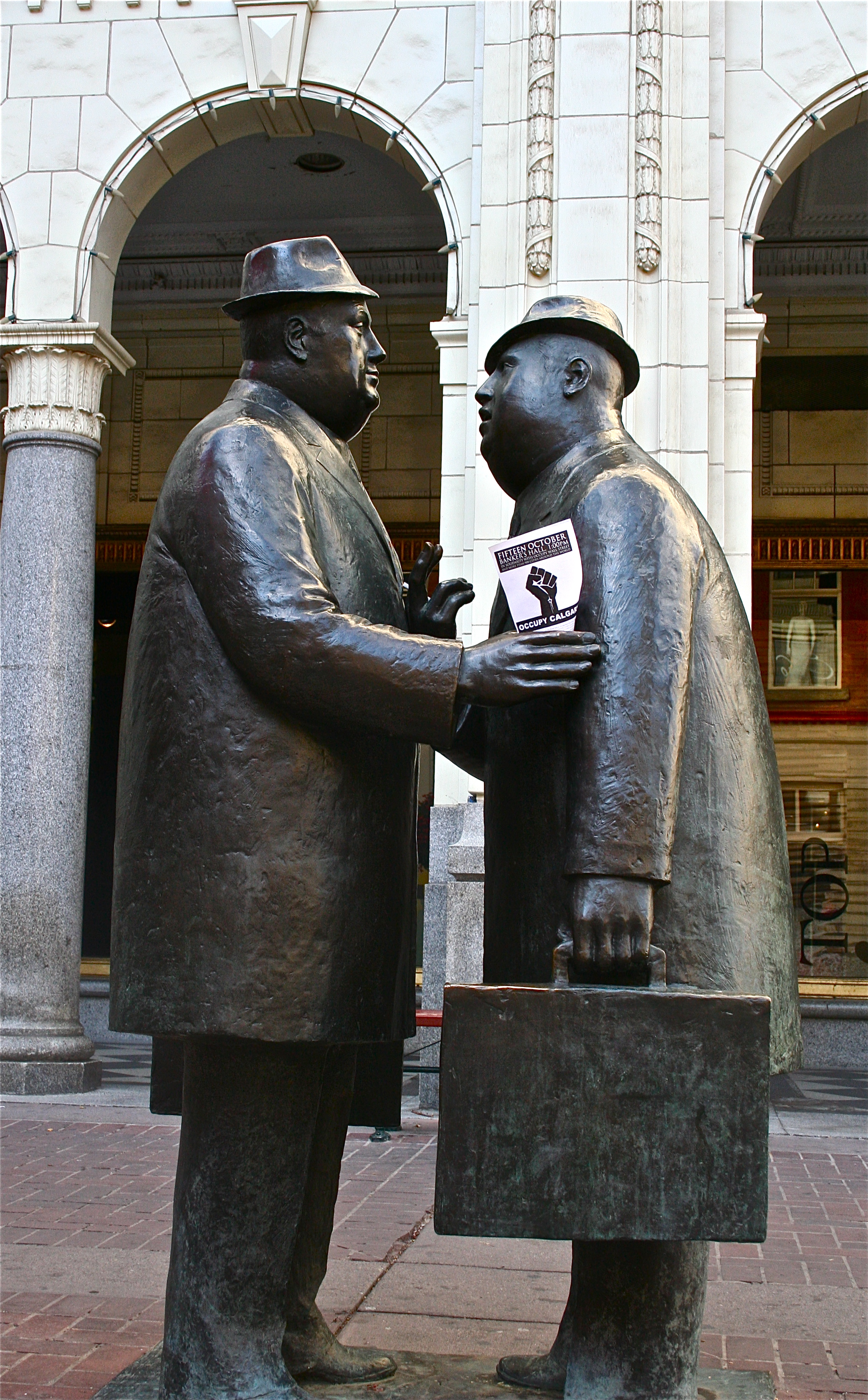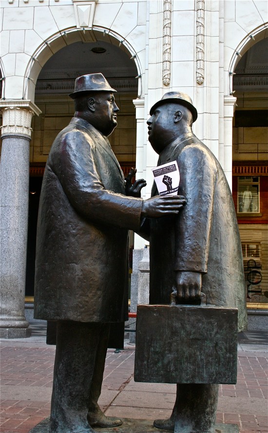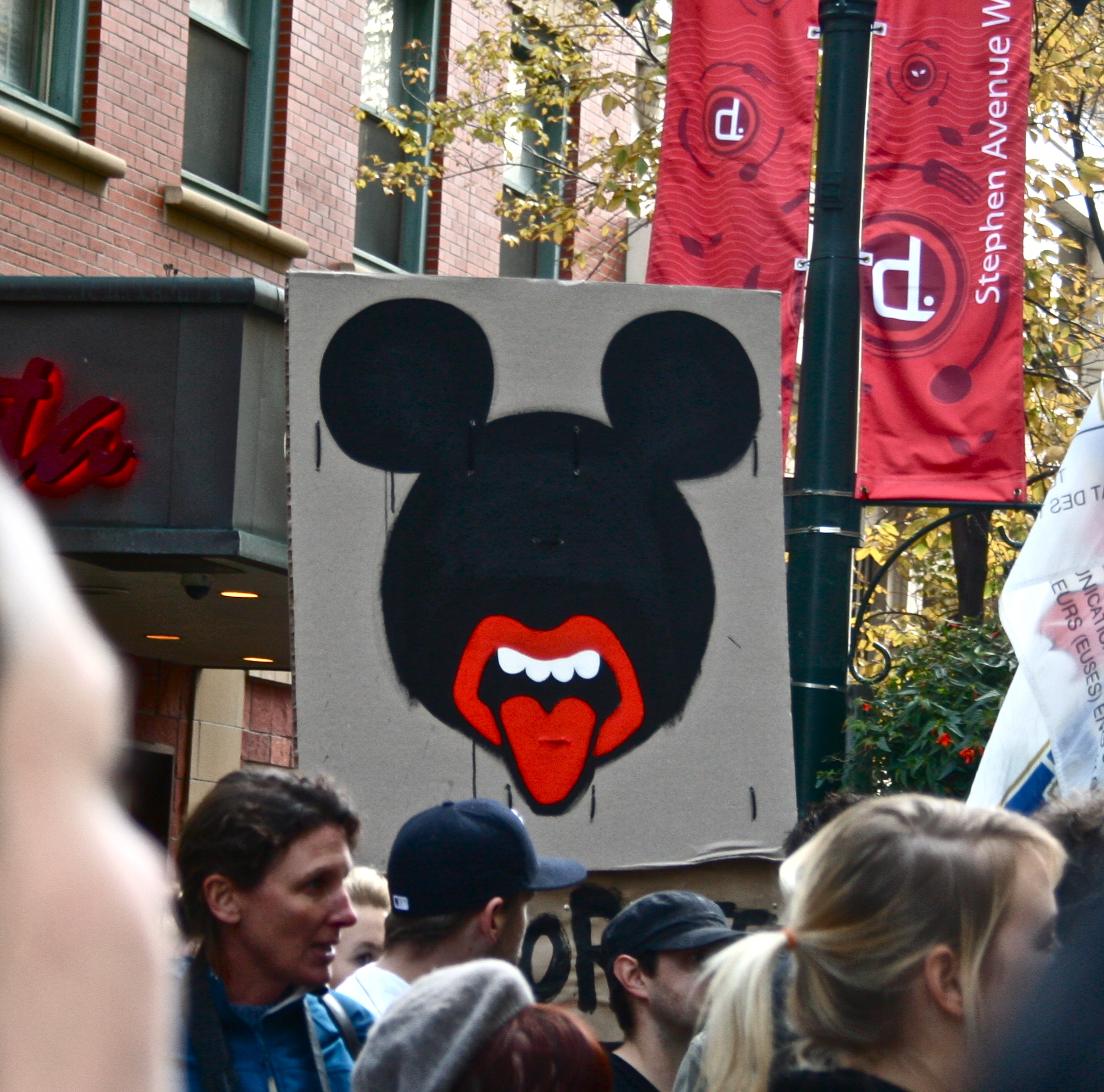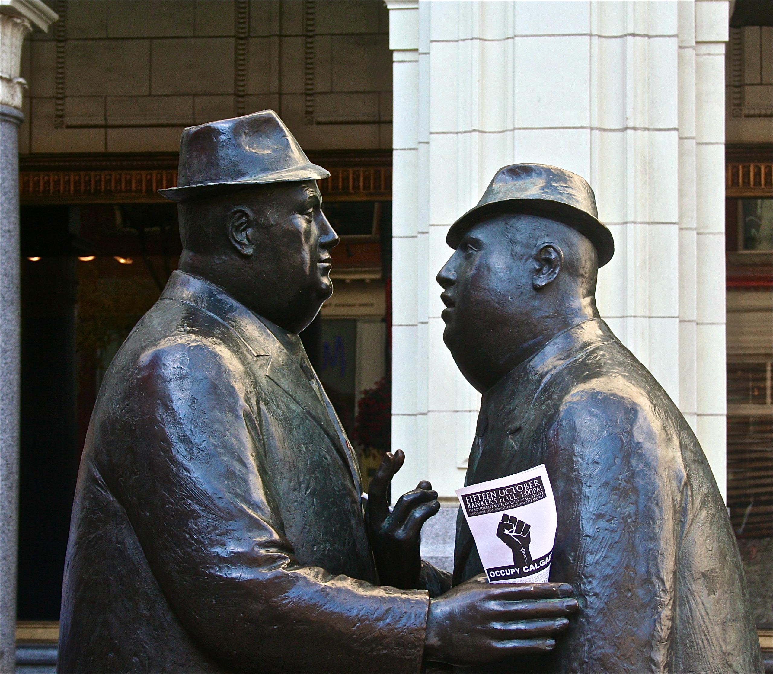 Nearly all in attendance were content Calgarians who were happily employed, representing, among others, the financial and oil sectors, health care and education industries, and student body. Even the police in attendance were happy to count themselves as the 99%. After all, they *are* part of the public sector. They are also unionized. This makes them part of the Horrible Terrible No Good Very Bad ‘union thugs’ and ‘public sector leaches’ Conservative politicians (and media) regularly villainize.