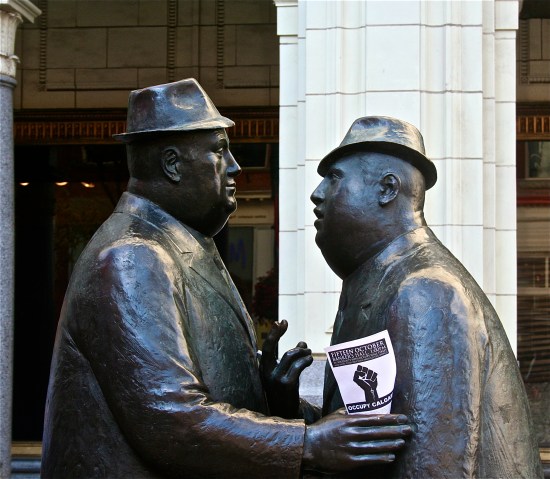 “It remains to be seen whether the Occupy Wall Street protests will change America’s direction. Yet the protests have already elicited a remarkably hysterical reaction from Wall Street, the super-rich in general, and politicians and pundits who reliably serve the interests of the wealthiest hundredth of a percent … (the) people who got rich by peddling complex financial schemes that, far from delivering clear benefits to the American people, helped push us into a crisis whose aftereffects continue to blight the lives of tens of millions of their fellow citizens.